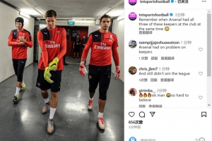 切赫、什琴斯尼、马丁内斯曾在阿森纳共事,TNT社媒晒出三名门效力阿森纳时期的合照,配文:“还记得阿森纳同时拥有这三名门将的时候吗?”